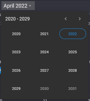 The navigation buttons at the top left of the calendar allow the user to change the month or day displayed in the calendar. Press the left and right buttons