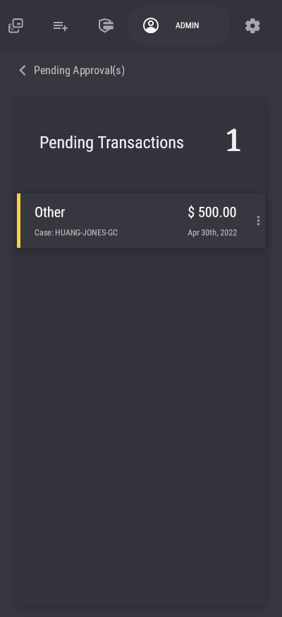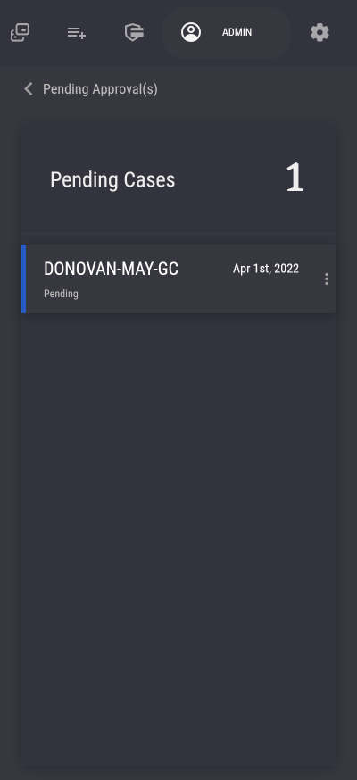 Pending Cases This allows the user to view all cases that are still awaiting the user's approval. In desktop mode, a right sidebar will pop up and display a list of all pending cases. In mobile mode, a new window will open instead.