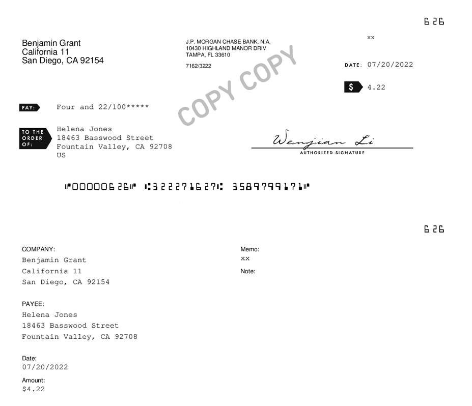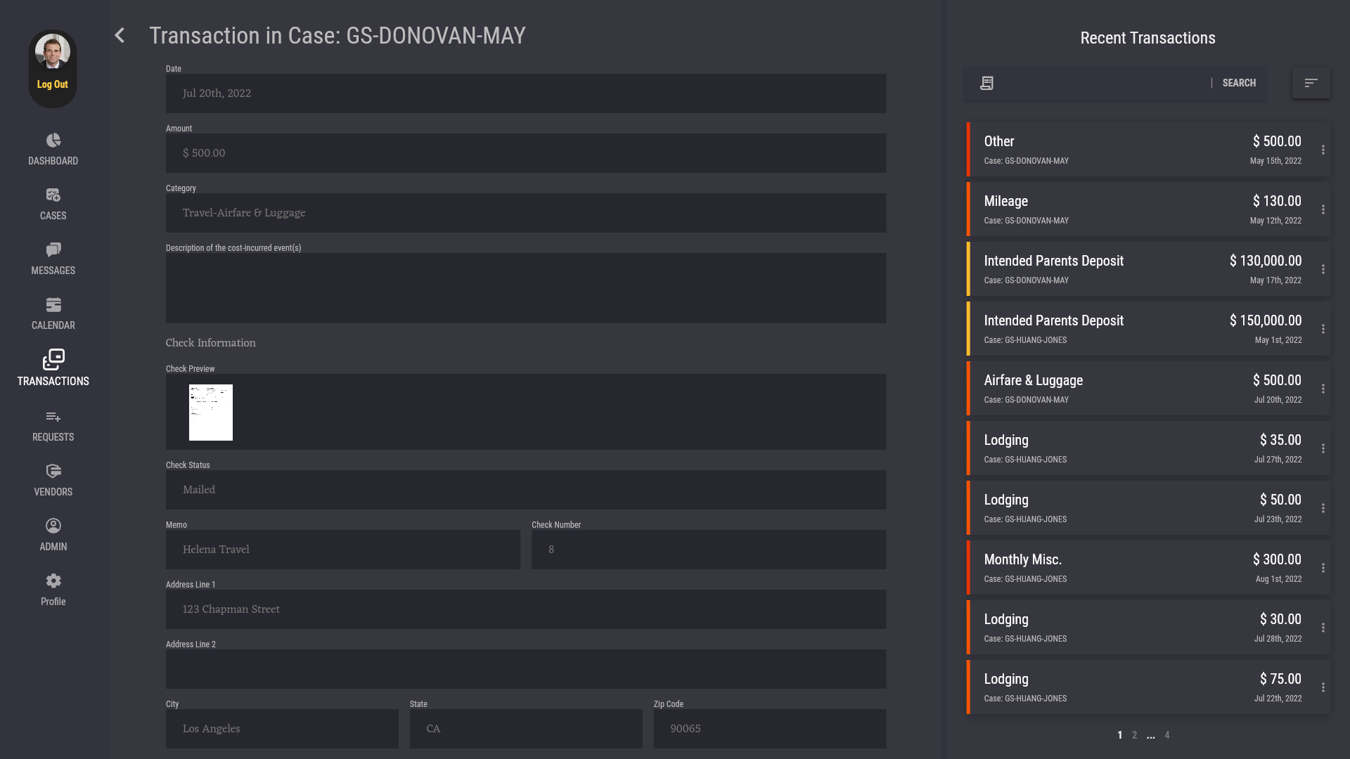 After the transaction has been successfully scheduled (which is usually a few days before the specified transaction date, you will be able to see the status as well as a preview image of the check on the transaction's detail page within the "Check Information" section.
