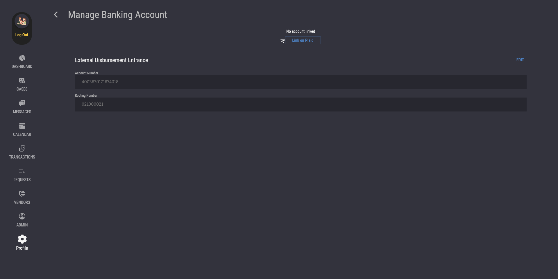 Non-Attorney Users To manage your banking account, go to your Profile page and press the "Manage Banking Account" button. You can press the "Link on Plaid" button to link your bank account with Plaid. You can still unlink your bank account, or change to a different bank account in the future.