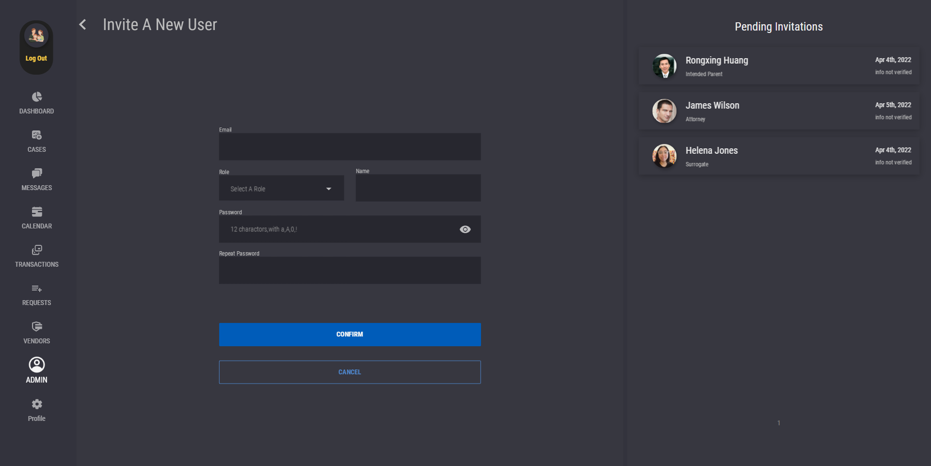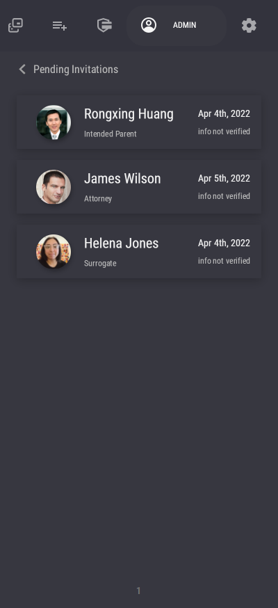 After inviting, you can go back to the admin panel to invite more users until all your case members have an account on TrustUS. You can also track the invitation's status in the "Pending Invitation" section of the "Invite a New User" page, or the "View Pending Invitations" button on the mobile Admin Panel page. However, regardless of the invitation's status, you are able to add those invited users when creating a new case.